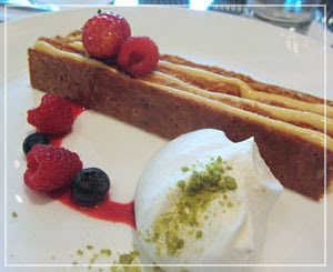 と、スタッフに言われて、「あ、パスタいいな」と一瞬思うも自重。数分後、自重して良かったとしみじみ思う、豪快なデザートがやってきた。